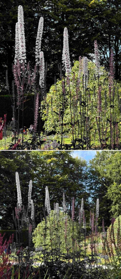 The best black leaved form of Actaea. The handsome foliage is joined by self supporting flowers late in the season. Avoid dry soils and exposed positions.