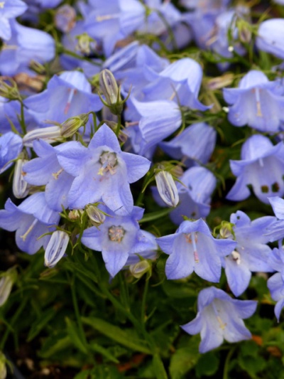 A miniature 'Bellflower' introduced by Pottertons Nursery. Relatively large, upturned flowers on neat plants. Good for troughs or containers.