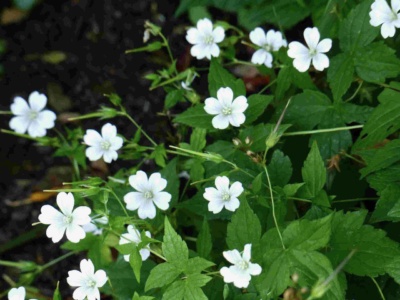 White flowers up to 40cm (15in) from June to September and growing 45cm (18in) wide. Happy in most garden soils in some shade.